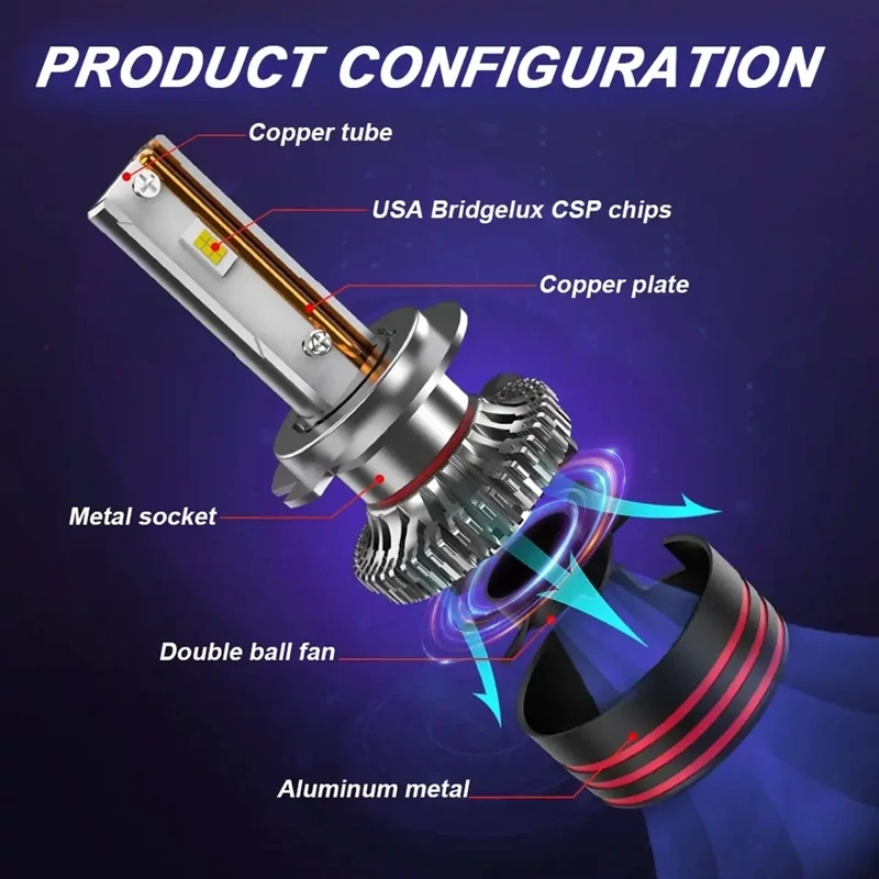 TbsDesign M8promax h7 کنباس دار 65 وات واقعی بدنه تمام المینیوم چیپ نوردهی 3570 6500 لومن شدت نور خط کات بسیار حرفه ای 50.000 ساعت عمر مفید یک عدد لوله وصحفه مسی برای خنک کنندگی 12 ماه گارانتی بدون قید و شرط