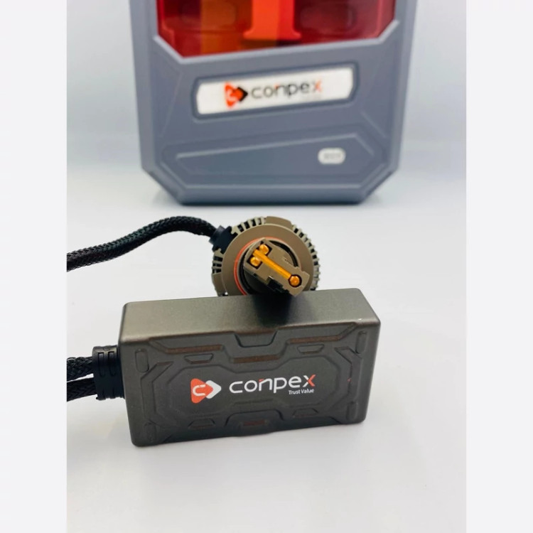 Conpex k150 h7 کنباس دار 150 وات واقعی بدنه تمام المینیوم چیپ نوردهی 4575 15000 لومن شدت نور 50.000 ساعت عمر مفید 12 ماه گارانتی بدون قید و شرط مناسب برای پشت لنز یا نور بالا دو عدد لوله مسی برای خنک کنندگی برای نصب این هدلایت استفاده از افتامات چراغ ضروری است