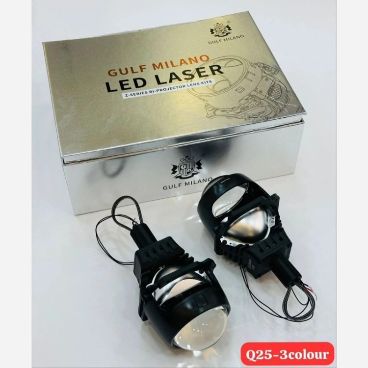 لنز گلف میلانو Q25 سه رنگ جنس بدنه فلزی دو و نیم اینچ BI-LED دو کنتاک سه رنگ خط کات Z نصب یونیورسال چیپ اصلی3570 دارای یک فن خنک کنند رنگ نور 6000-4300-3000 کلوین عمر مفید 50.000ساعت دارای یک فن خنک کنند یک سال گارانتی تعویض